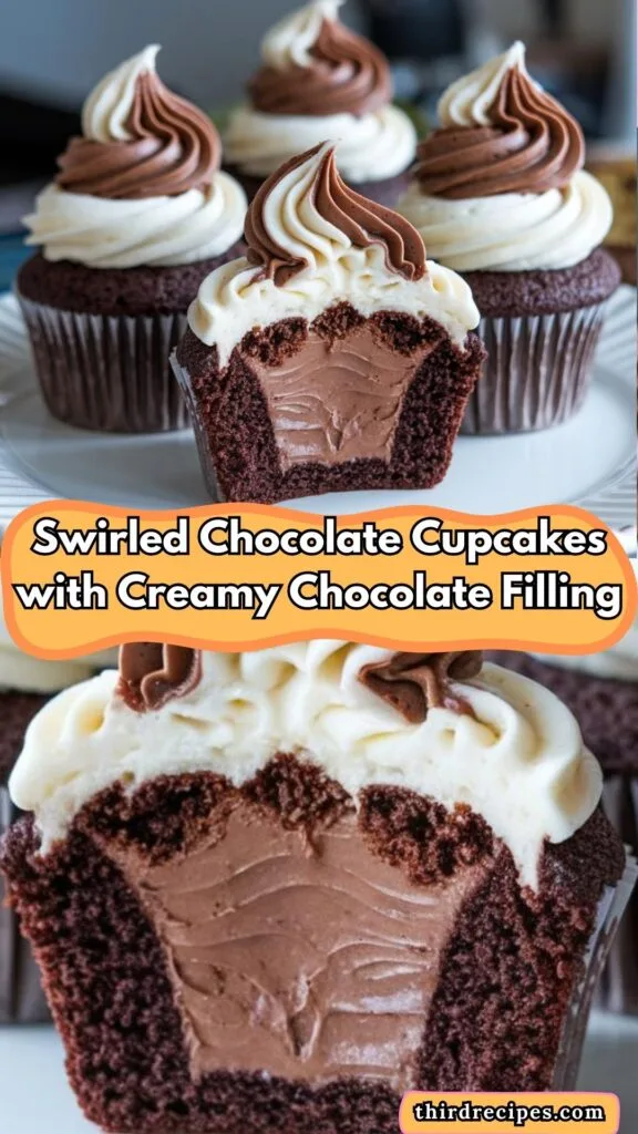 Swirled Chocolate Cupcakes with Creamy Chocolate Filling